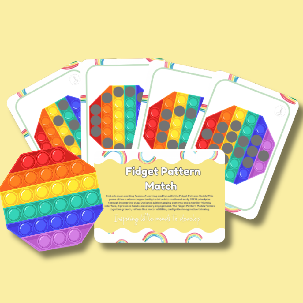 Children use the fidget board to recreate colourful patterns shown on the activity cards. This engaging activity builds spatial awareness, focus, and problem-solving skills, all while keeping busy hands calm and occupied.